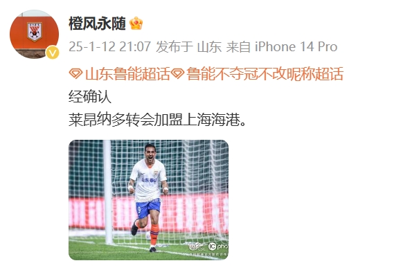 01月12日訊 專(zhuān)注山東泰山資訊的博主“橙風(fēng)永隨”爆料,萊昂納多將轉(zhuǎn)會(huì)上海海港。