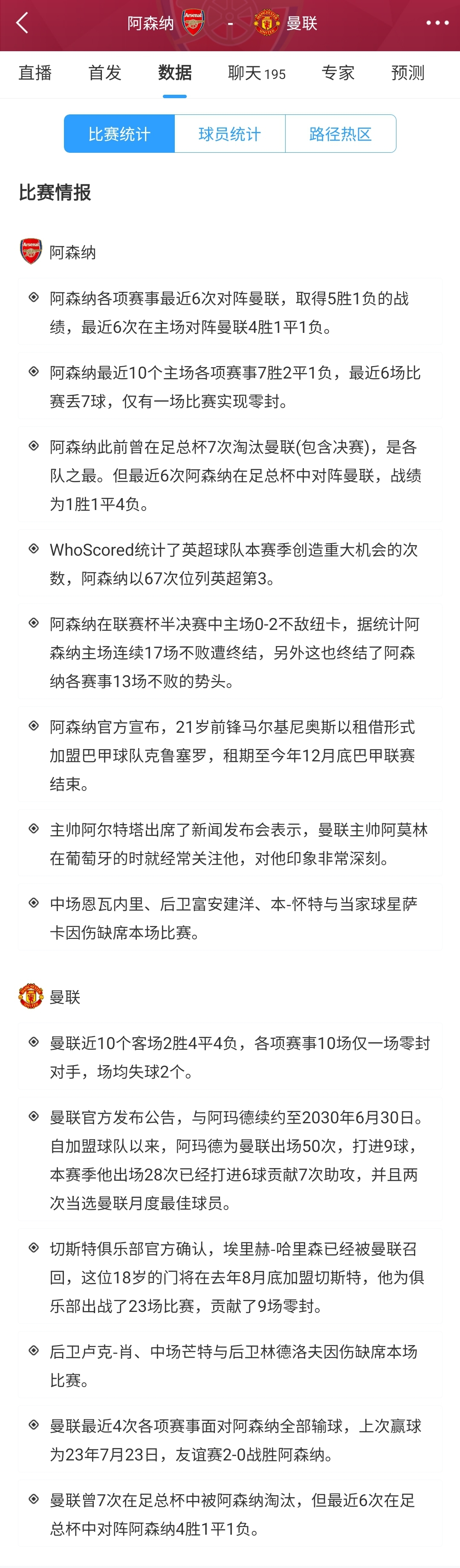 阿森納目前在英超以11勝7平2負積40分,排名第2;曼聯6勝5平9負積23分,位列第13。