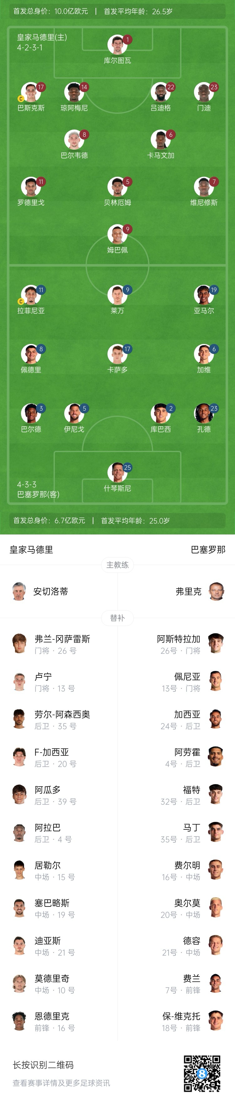發(fā)布時間:2025年01月13日 02:50點擊:欄目:足球新聞 除特別注明外,本站所有內(nèi)容均為九球直播整理排版,轉(zhuǎn)載請注明出處:豪華對決!皇馬首發(fā)總身價10億歐,巴薩首發(fā)總身價6.7億歐 本文標(biāo)簽: 足球 西甲 皇家馬德里 巴塞羅那