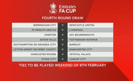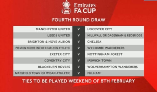 足總杯第四輪對(duì)陣情況↓(主隊(duì)在前,客隊(duì)在后)